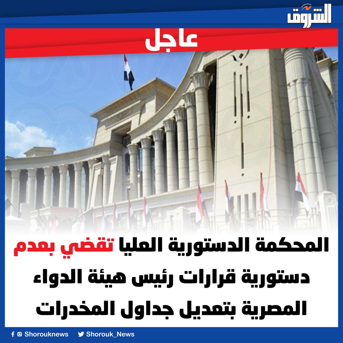 فى حكم عدم دستورية قرار رئيس هيئة الدواء المصرية اولا : بشأن القضايا التى يكون محلها المواد المخدرة المضافة بموجب قرارات رئيس هيئة الدواء الم