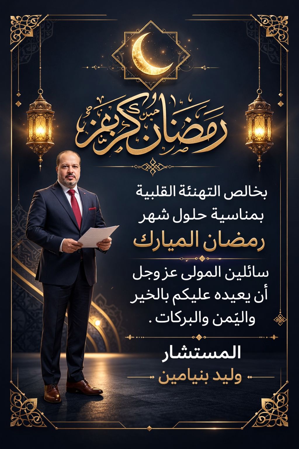 أرق التهاني وأطيب الامنيات لأخواتي وزملائي وجيراني وللأمه العربيه والاسلاميه بمناسبه حلول شهر رمضان المبارك . اعاده الله عليكم وعلينا بالخير واليمن و